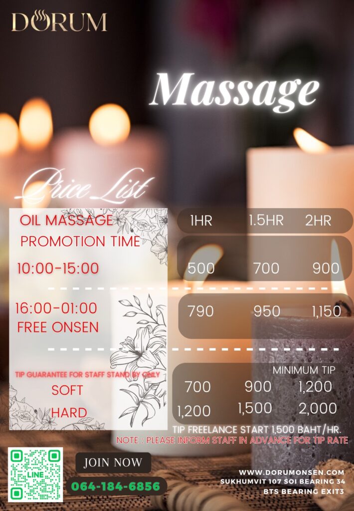 หากต้องการใช้บริการนวด กรุณาจองพนักงานล่วงหน้าอย่างน้อย 1–1.5 ชั่วโมง